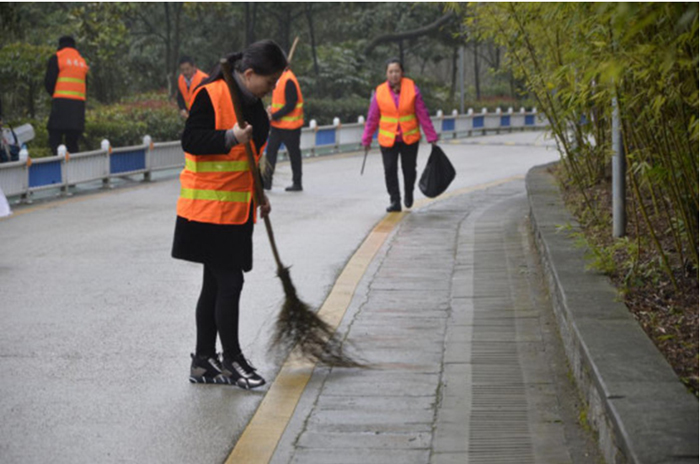 大家不怕臟、不怕累、密切配合,對公園道路及綠化帶內(nèi)的落葉、雜草、垃圾等進(jìn)行了全面清理打掃,整條道路上洋溢著一派團(tuán)結(jié)協(xié)作、奮發(fā)向上的融洽氣氛。經(jīng)過2個(gè)多小時(shí)的緊張勞動(dòng),被打掃過的道路煥然一新,受到公園工作人員和過往群眾的一致好評。