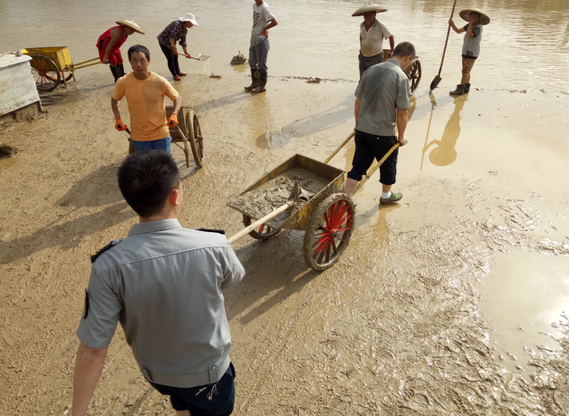 為了使家園早日恢復(fù)平日的潔凈,我們的清理小分隊從中午開始連續(xù)清淤6小時,雖然中途沒有一分鐘的歇息,但在他們的臉上卻看不到一點抱怨和疲倦。他們認(rèn)為,只要能為美化自已的家園盡一份微薄之力,再苦再累心里也是開心、甜蜜的。