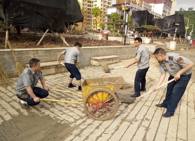 受“7.4”洪災(zāi)影響,碧江區(qū)錦江河水暴漲,河兩岸人行道、房屋、公園等公共設(shè)施大面積被淹,銅仁客車站、小十字、南長城水果批發(fā)市場、梵凈山大道、謝橋、環(huán)北辦事處等低洼地帶積水嚴(yán)重,受損不輕。 洪水慢慢退去后,到處一片狼藉,碧江城區(qū)受災(zāi)的道路、公園、沿江步道、商戶、房屋內(nèi)等地堆積了厚厚的淤泥,最深處有1米多。為了家園及時恢復(fù)城市的潔凈,貴州鎮(zhèn)東護(hù)運有限公司銅仁本部立即在7月6日組建小分隊,與群眾一起在謝橋體育館參與清淤工作。