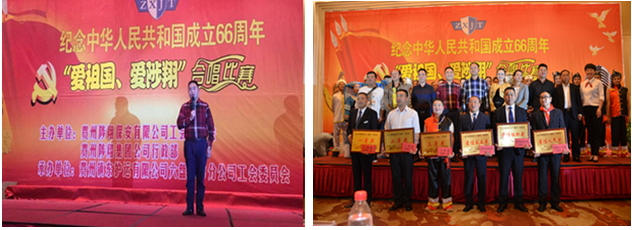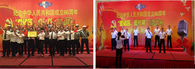 經(jīng)過1個多月的精心準(zhǔn)備,鎮(zhèn)東護運銅仁本部、黔東南州分公司、六盤水市分公司三支代表隊于 2015年9月29日在六盤水市參加由貴州陟翔集團組織的“紀(jì)念中華人民共和國成立66周年暨‘愛祖國、愛陟翔’合唱比賽”。經(jīng)過6支參賽隊緊張、激烈的角逐,六盤水市分公司榮獲一等獎,黔東南州分公司榮獲最佳風(fēng)采獎,銅仁本部榮獲最佳組織獎。