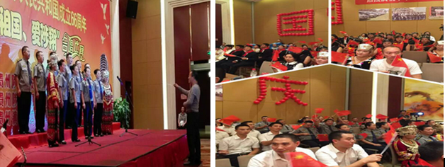 在圓滿完成“9.3”中國人民抗日戰(zhàn)爭暨世界反法西斯戰(zhàn)爭勝利70周年紀(jì)念活動期間各項工作之后,總公司上下繼而開展“9月質(zhì)量月”、中秋國慶“雙節(jié)”檢查慰問、“紅歌”合唱比賽等“三個活動”,提高企業(yè)服務(wù)質(zhì)量,凝聚員工士氣,宏揚鎮(zhèn)東正能量、愛國熱忱和社會責(zé)任感,以實際行動向建國66周年獻禮!
