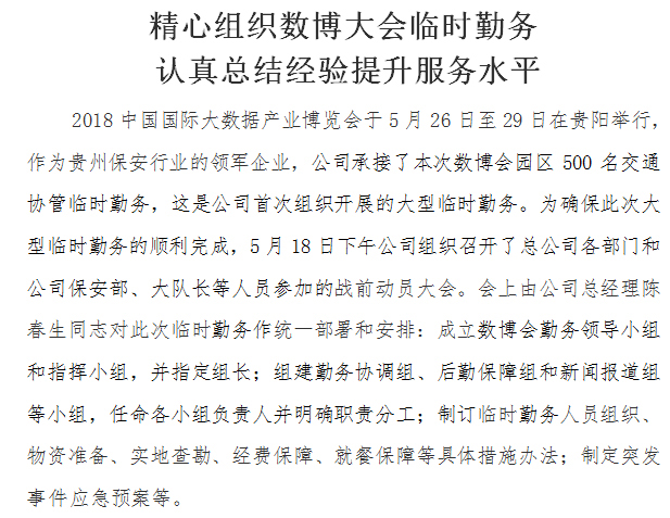 精心組織數(shù)博大會臨時勤務 認真總結(jié)經(jīng)驗提升服務水平