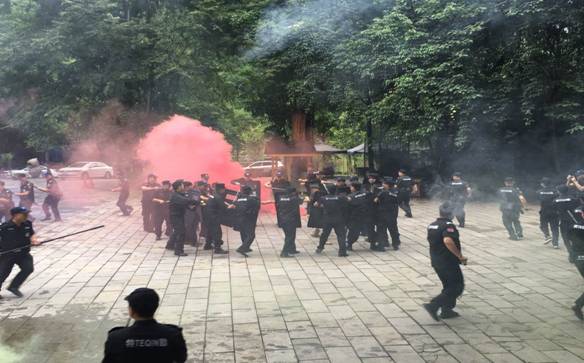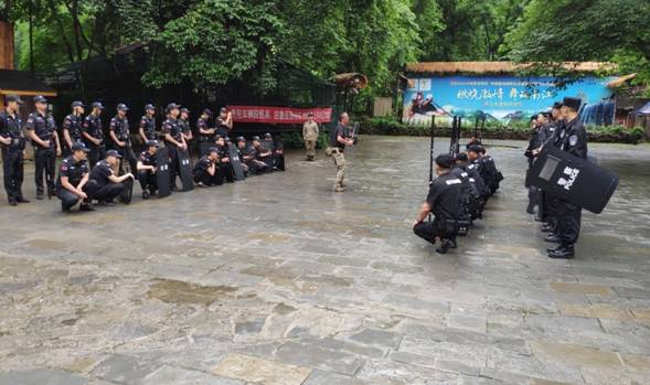 本次演練分為理論培訓、隊形訓練和反恐應(yīng)急處突演練,以求達到“能發(fā)現(xiàn)、會舉報;能避險,會自救;能識別,會應(yīng)對”的反恐防暴能力,全體隊員不怕苦、不怕累,在小雨中堅持演練。貴州陟翔保安有限公司駐車輛段、客運段保安隊副隊長姚建同志在訓練中眼睛受傷不下火線,用清水清洗后立即投入訓練,得到客戶單位領(lǐng)導(dǎo)的一致認可。